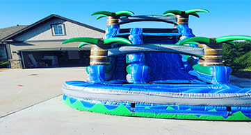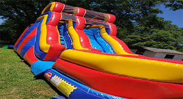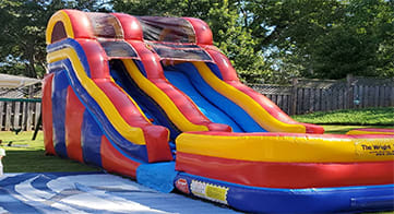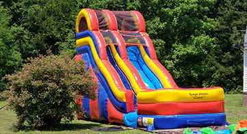 During setup, we ensure the Party Rental is properly secured either by stakes or sandbags. Because Safety is a Top Priority, there may be times when the weather prohibits use of an Inflatable Slide Rental or Bounce House Rental. Winds over 15 mph are unsafe conditions for Bounce House Play and the Inflatable rental must be deflated. While we’re all for letting the kids play in light rain, use the weather checker at the top of page to check that no severe weather is expected during your Party Rental period.