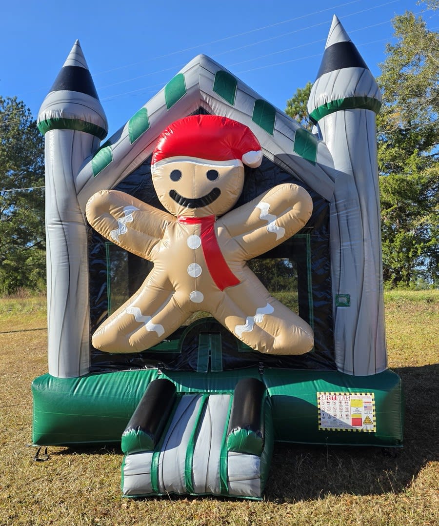 Make your holiday event unforgettable with our festive inflatable combo! This package includes both the 13x13 Bounce House and the Combo Bounce House with Slide — each decorated with cheerful Christmas-themed fronts: Santa Claus and the Gingerbread Man.