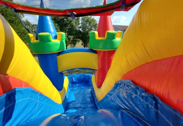 The Rainbow Combo takes 1 blower and needs to be within 100ft of a dedicated outlet. A soaker hose is mounted onto the slide and will need an additional hose to connect to your water source. If you are looking for a Bounce House Rental, this is a great option that includes a Slide attached to it. This Moonwalk is suitable for all ages and will go great with any theme that you may be having with your event.