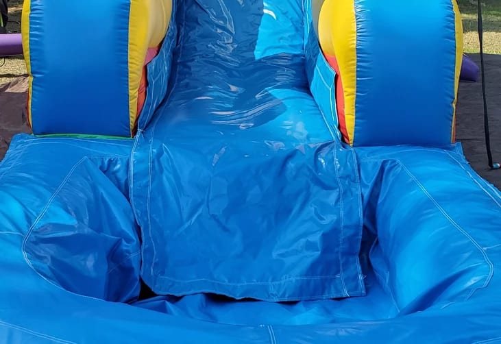 The Rainbow Wet/Dry Combo is not your average Combo. It measures 27.5ft x 17ft x 15ft. This Bounce House Combo Rental is always a hit and has stayed one of our #1 renters. It comes with a basketball goal inside then leads to a slide that can have a backstop or a pool at the bottom for those hot summer days.