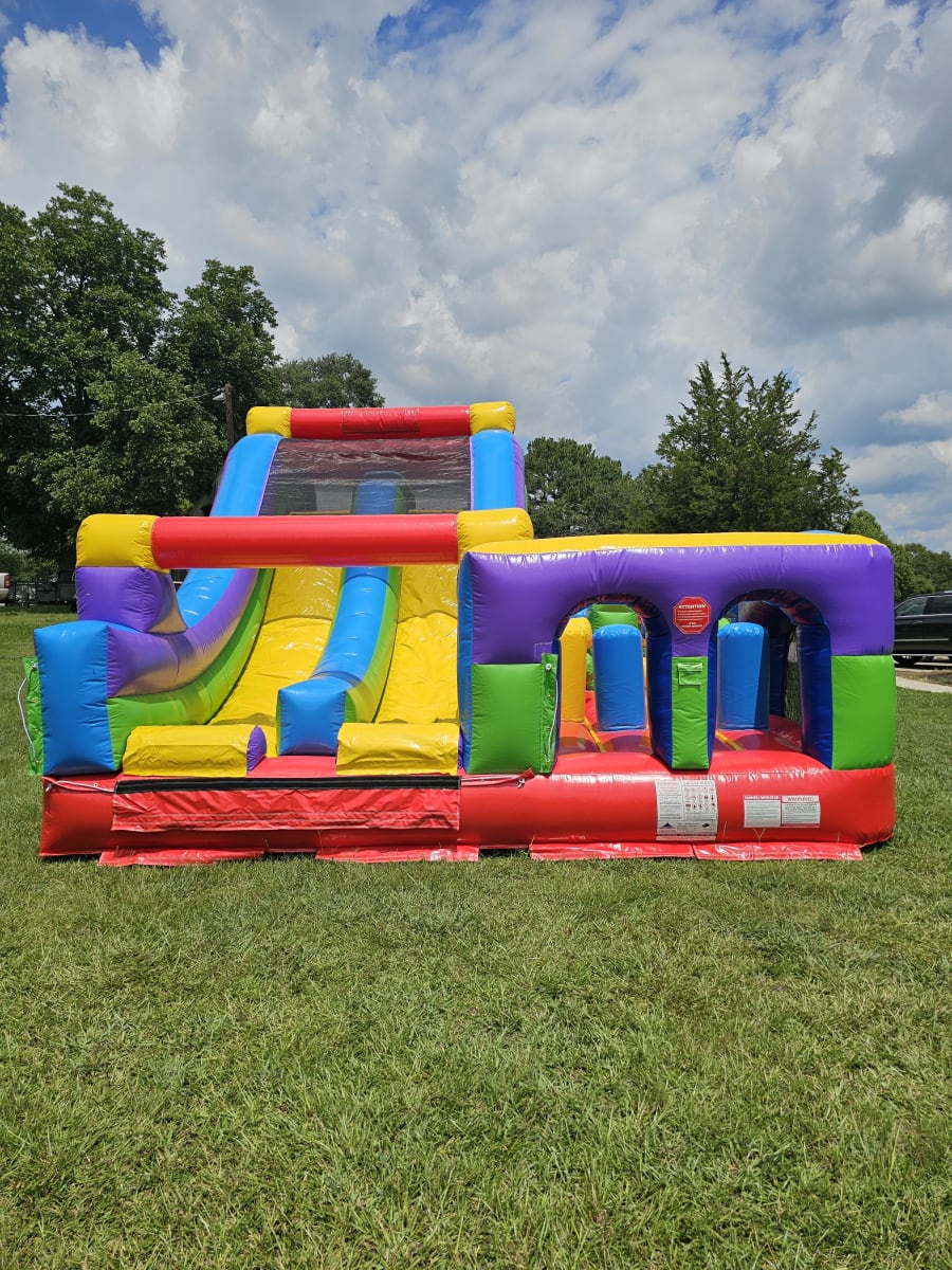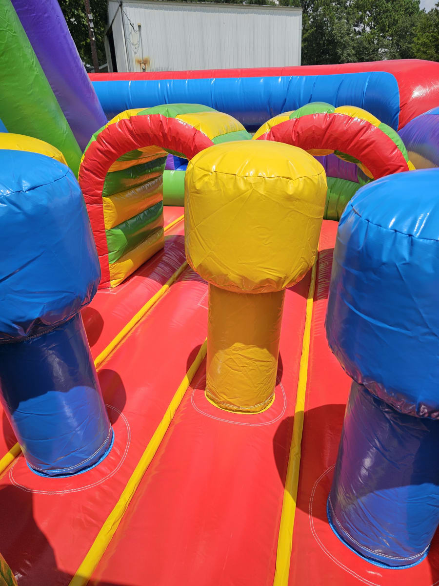 Make your occasion stand out with our top-rated inflatable rentals; 60' Retro Rainbow U-Turn Dual Lane Obstacle Course in Upstate, SC. We proudly serve your local community, bringing safe, clean, and exciting inflatable attractions right to your doorstep. Reserve your date now and watch your guests light up with joy as they take on every twist, turn, and challenge that this incredible obstacle course has to offer. Contact us today to secure your booking and make your next event truly spectacular! 🚚🎈