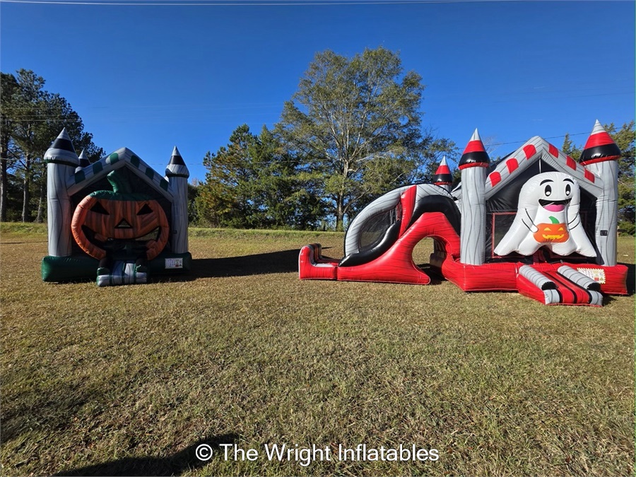 Spook up your fall event with our Halloween inflatable combo! This package includes both the 13x13 Bounce House and the Combo Bounce House with Slide — each decorated with festive Halloween-themed fronts: the Ghost and the Jack-O’-Lantern Pumpkin.